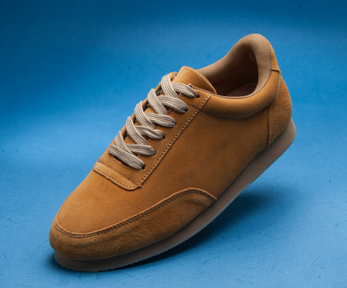 要控制阴影,用的顶光+透射伞,使阴影全部集中在鞋子下面,鞋子左侧曝光不足,用了一块小泡沫板手持补光。