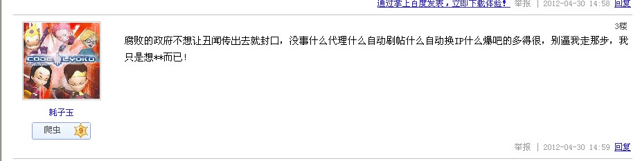 在下实在是才疏学浅,不知道这些东西能不能作为证据。不过呢,在下一向听说耗子大哥工于计算机,精与资源,创造了靠资源得到小吧主这个位置的先例,今日一见,果然不同凡响。而且爆吧不但触犯吧规还触犯了百度协议哦亲,不过我知道耗子大哥的话一定能做个软件把什么百度无敌破掉啊什么的轻而易举。