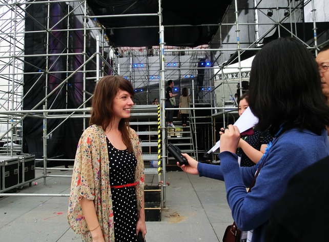 这是昨天 草莓音乐节的照片 刚下场就被记者围住了 ~!!!