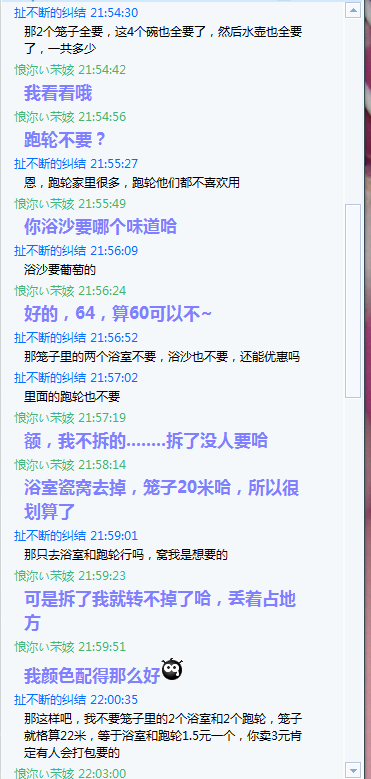 事情是这样的,我在转笼子,然后和别人讨论快递细节的时候,她粗现了