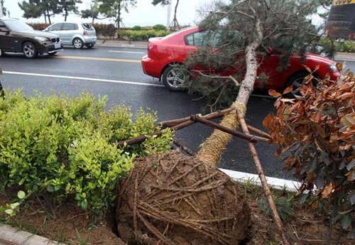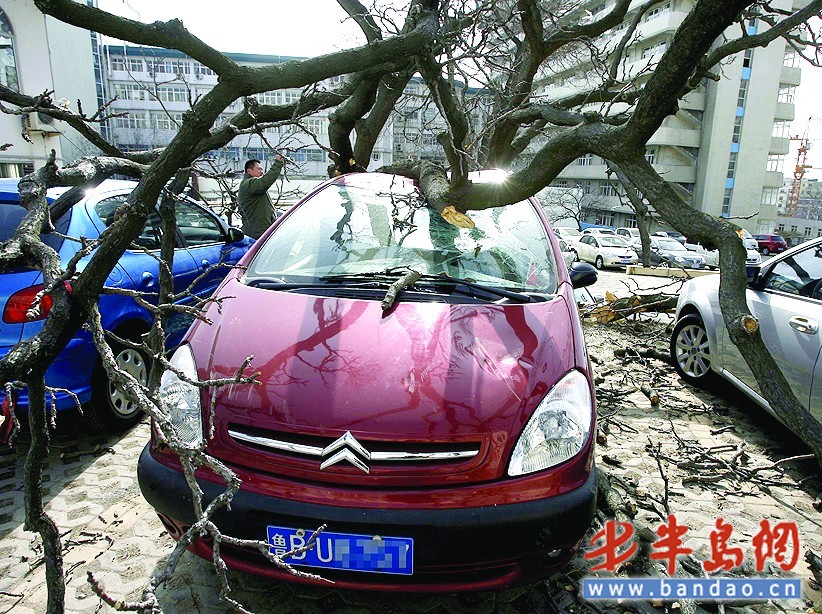 一场普通的春雨过后……大风起兮树飞扬……砸人砸车砸的不亦乐乎。