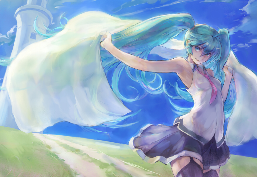 这张虽然很普通了,但却是我第一次见到miku的样子(在一个太阳能钥匙链上),所以印象很深