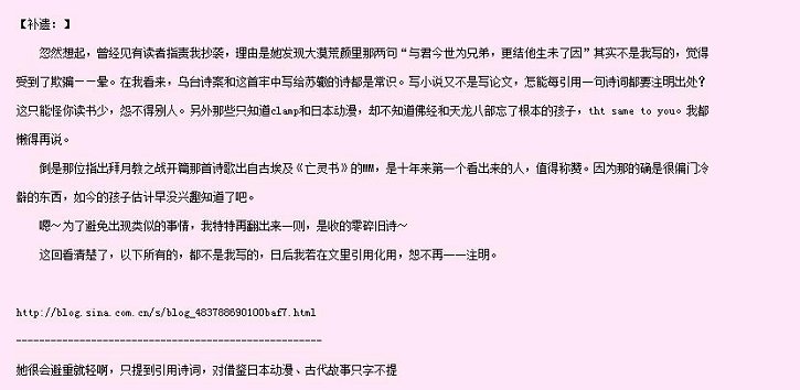 天涯里有筒子说得好:当你知道了她书里的精华全是借鉴致敬来的,她还有什么价值,值得你去喜欢。