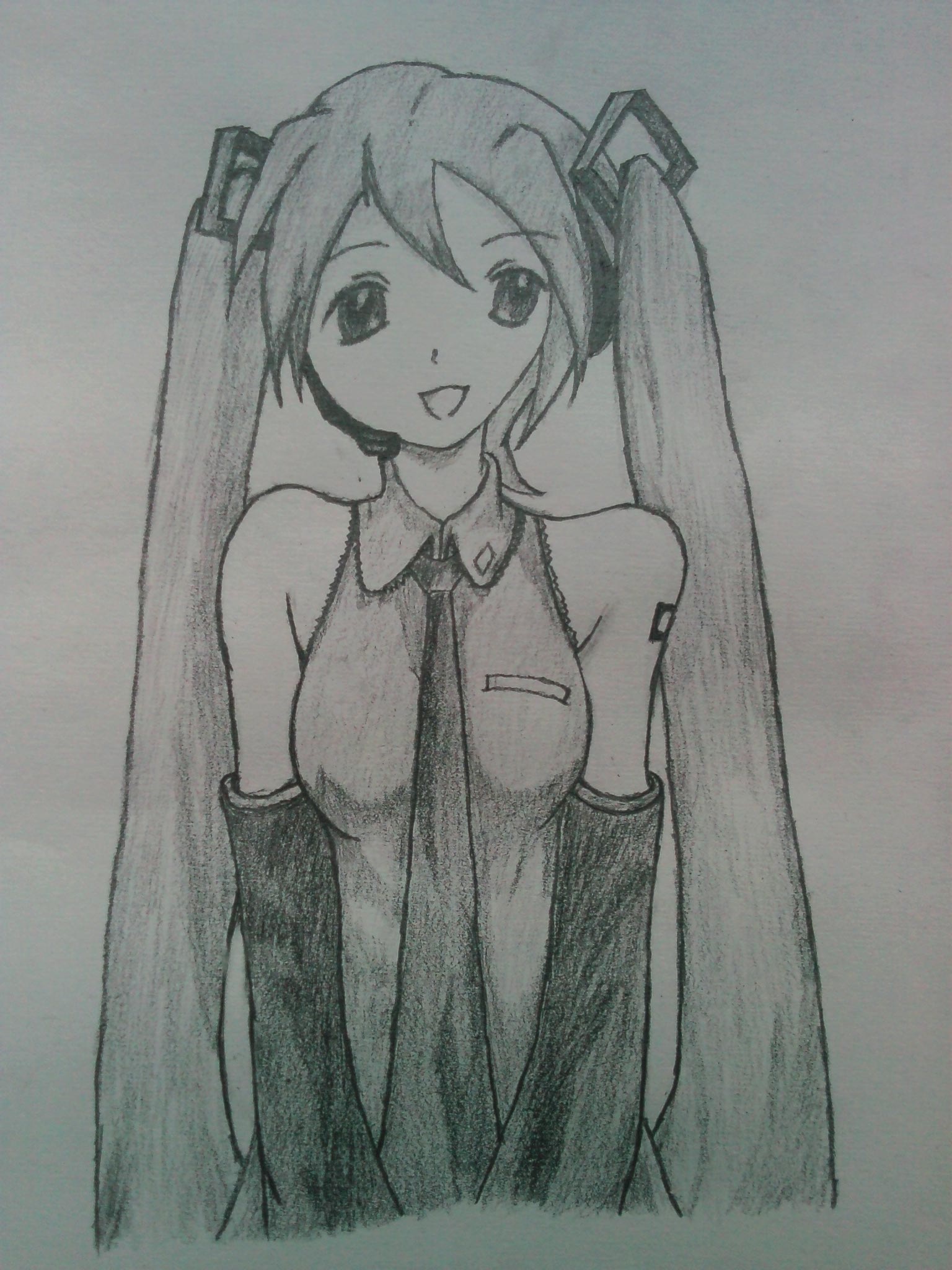 还记得咱临摹的第一个初音么,那个崩的不能再崩的画,这次为了表达对初音的歉意,专门斋戒三日,沐浴更衣,然后动笔,结果……还是有点崩