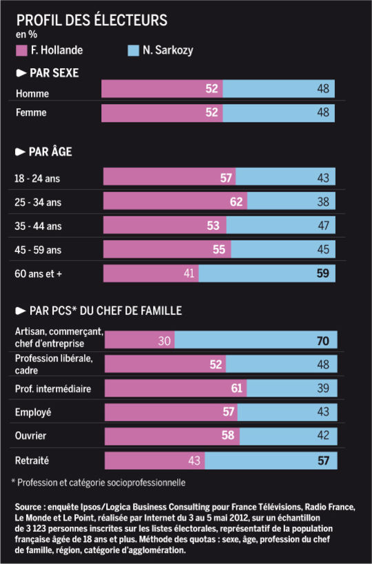 2楼图表,萨科奇选民只在三种群体中占多数: