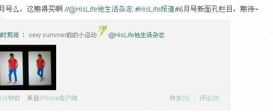那家杂志也转发了,《他生活》,是六月号