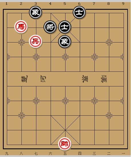 1. 兵七进一 将4退1 2. 兵七进一 将4平5 3. 兵七平八 象5进7 4. 马八退七 象7退9 5. 兵八平七 象9退7 6. 马七进九 象7进5 7. 马九进七