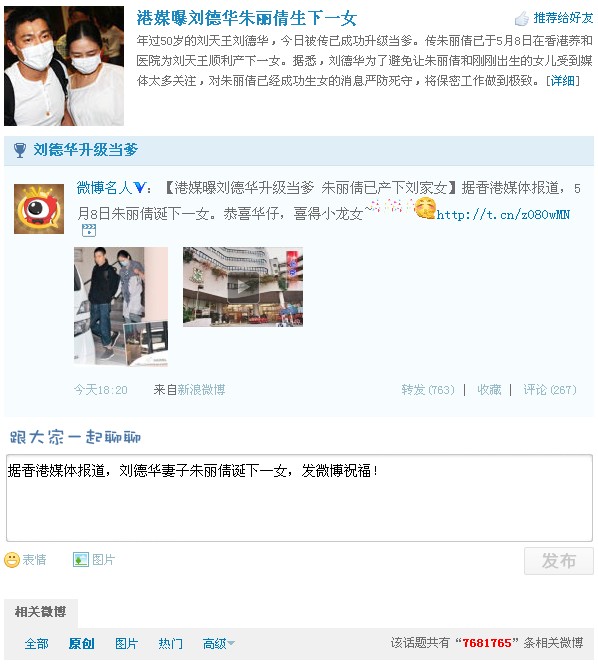 刘德华喜获千金 新浪微波碉堡了