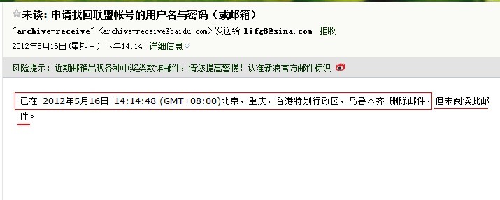 疑问:为什么我发了申请找回联盟的用户名及邮箱的邮件,却加看都不看就被直接删除了呢?