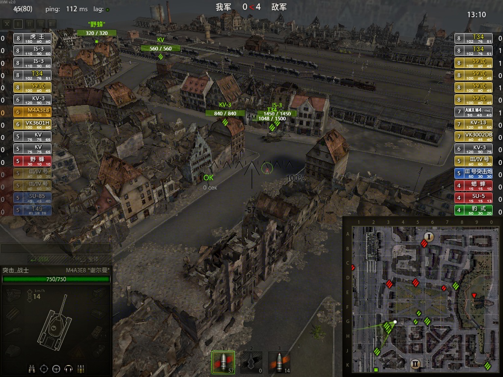 帮你看一样,那T34根本无暇顾及这边,在墙洞和杀毒车对射呢。别跟我说那13你打不过