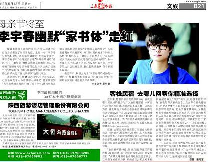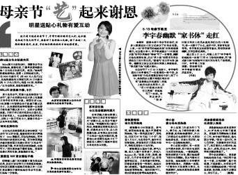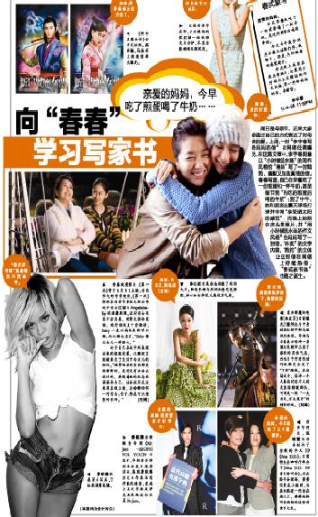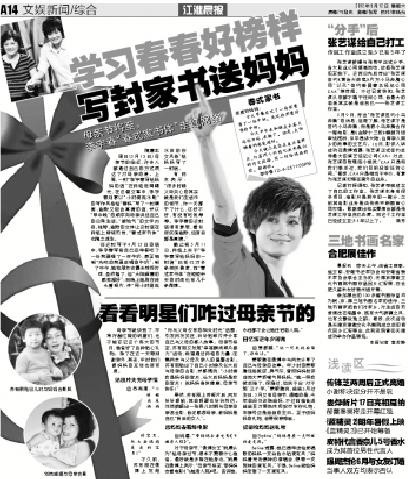 向“春春”学习写家书 周日是母亲节,近来大家都通过自己的方式表达了对母亲的爱。上周,一封“李宇春写给妈妈的信”在网络低调曝光,在这篇文章中,李宇春刻意以“小时候流水账”的写作风格给“春妈”写了一封精简、幽默又饱含真情的信。春春写道,自己在早餐吃了一份煎蛋和一杯牛奶,甚至细节到“先吃的煎蛋后喝的牛奶”;到了中午,她和朋友去露天球场打球并非常“享受晒太阳的感觉”;而晚上她则在床头看照片,并“用小时候流水体的作文风格”给妈妈写了一封信。“朴实”的文字内容,“简约”的文体让这封信在网络上持续热传,“春式家书体”也随之诞生。
