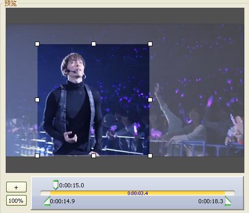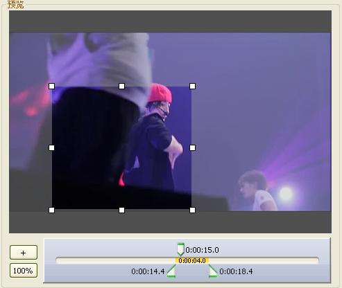 按下下面的+,进度栏就会扩大了,可以精确选取视频的长度,按100%就会回来原来的进度表