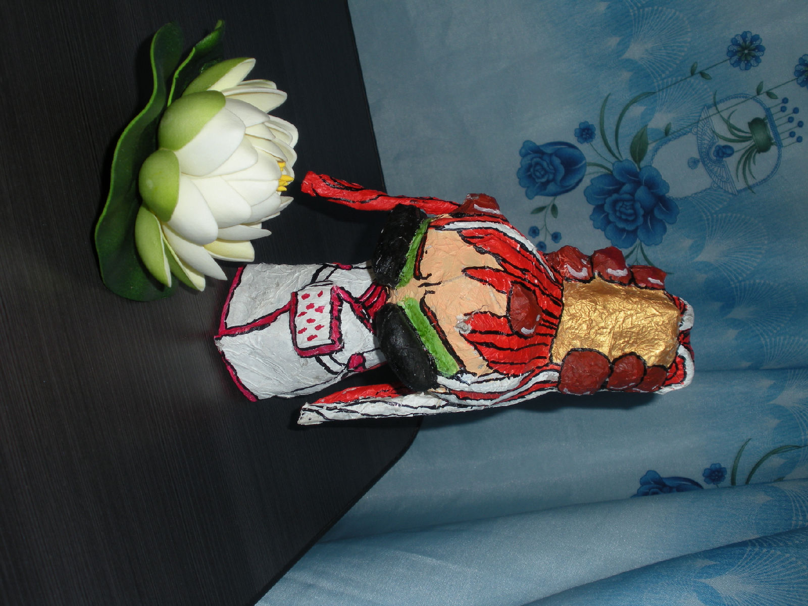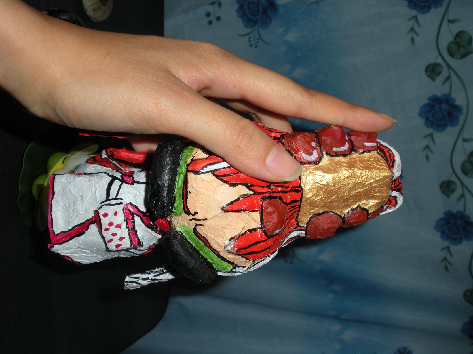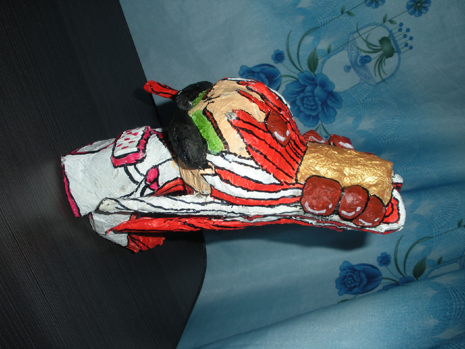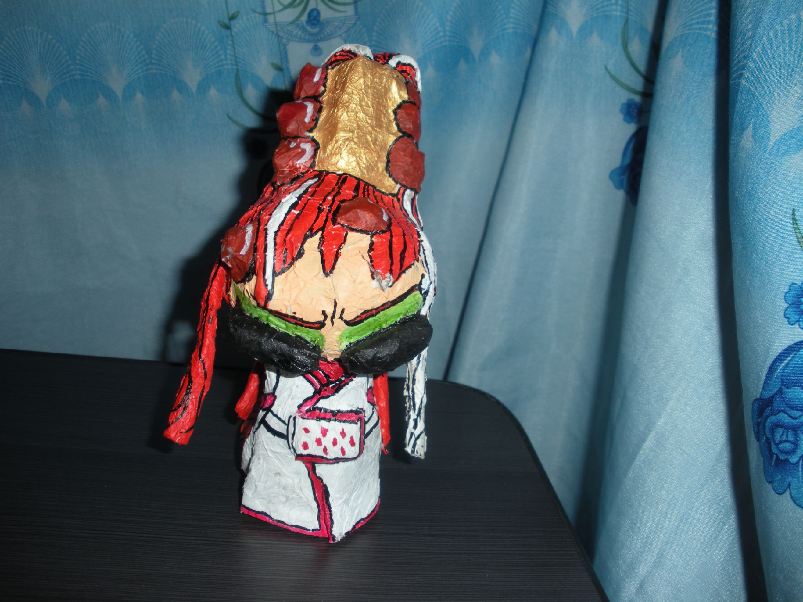 正面,脑袋边上头发那里被舍管的小孩拿去玩时摔破了,可见真的是用报纸做滴~~~