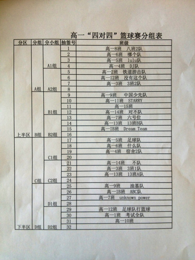 【转自世萌吧】神奇的篮球赛分组表