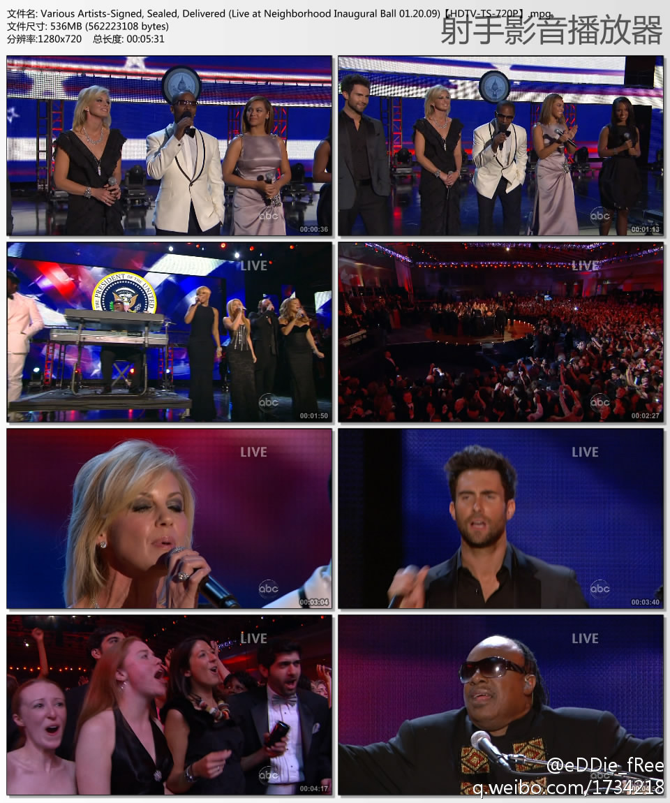 奥巴马就职舞会群星合唱《Signed, Sealed, Delivered》~