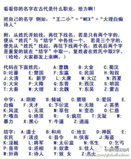 你的名字在古代是什么职业? ......