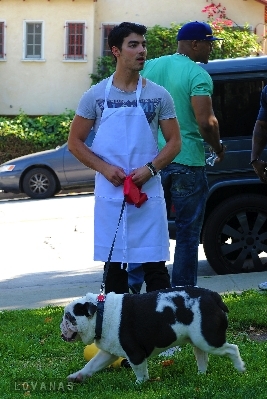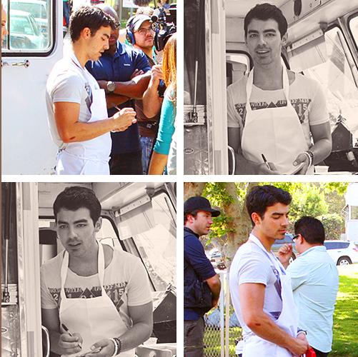 【J.O.N.A.S℡】[0520|图片]Joe穿围裙和Meaghan在公园卖汉堡