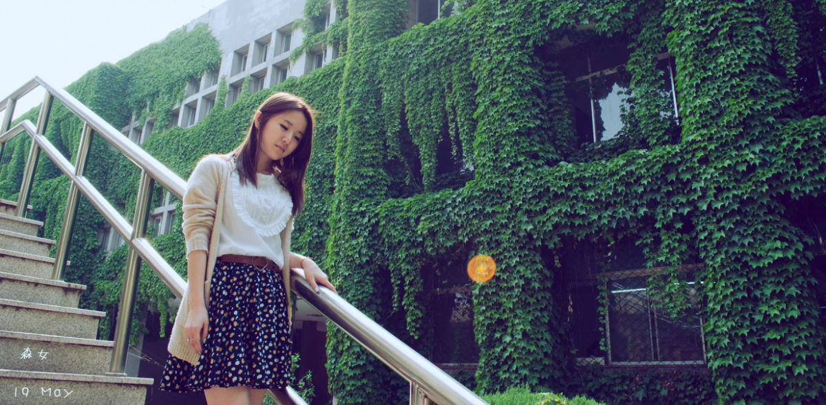 这张教学楼真的很有感觉,几乎都是爬山虎。妹子也很美。