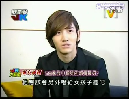 昌珉:唱歌的话,他应该只唱给女孩子听。(多少吃味啊)他应该从来没想过要唱歌给我听吧。(哟,幽怨的口气)