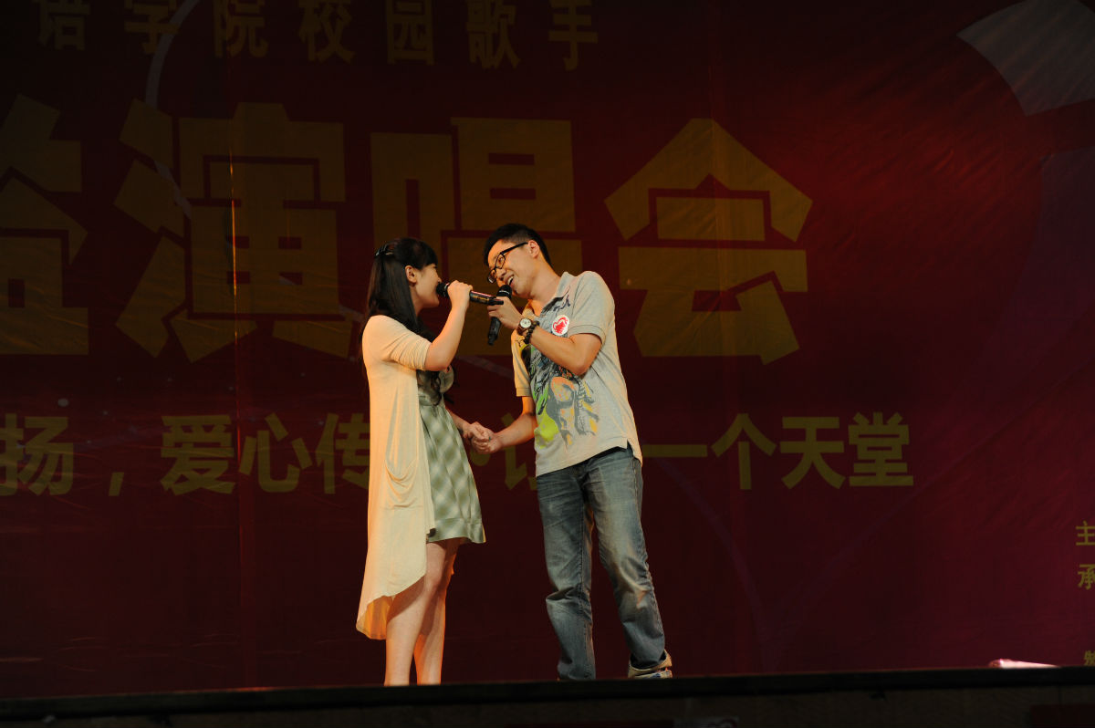我和这个男生都是学校十佳歌手出来的,不过我就是一酱油哈哈,他是亚军,当时唱的《浮夸》