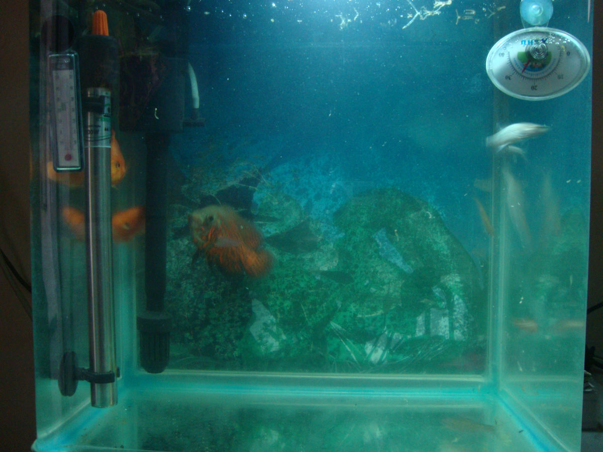 再练练我就搞个大缸,直接连龙鱼了。我其实一直想养龙鱼的。就是因为新手。要挂了一条龙鱼。顶上一筐小地图呢。所以先练小缸了!!呵呵!!