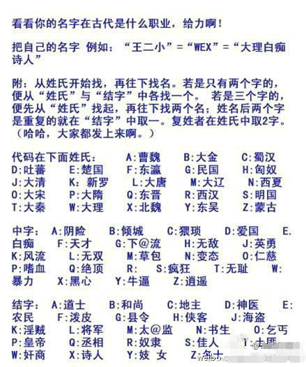 仅供娱乐~~~~说来听听麽亲~~~~