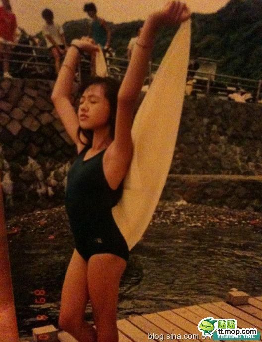 小S儿时的泳装照,11岁就有了S型身材...