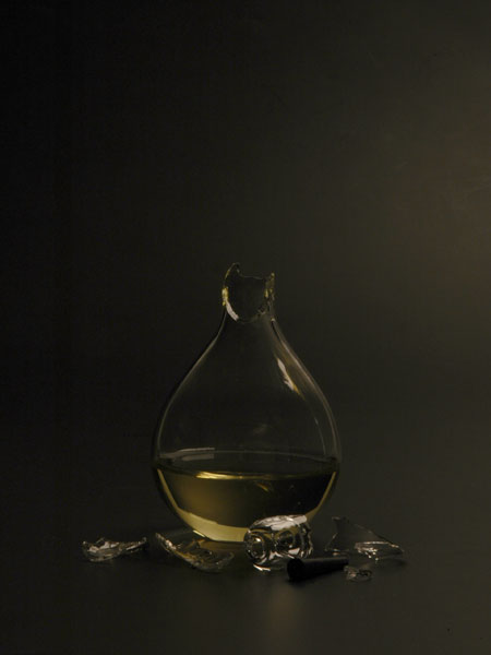这是如何开启“血液之灯”的一段演示。视频里一名女子在昏暗的室内将此“血液之灯”的瓶颈打破,用瓶颈破裂的玻璃划破手指,注入自己的鲜血使灯发亮。这盏“血液之灯”只能使用一次,使用者在使用前必须考虑,是否已到了需要开启它的时刻,进而重新思考能源的可贵。