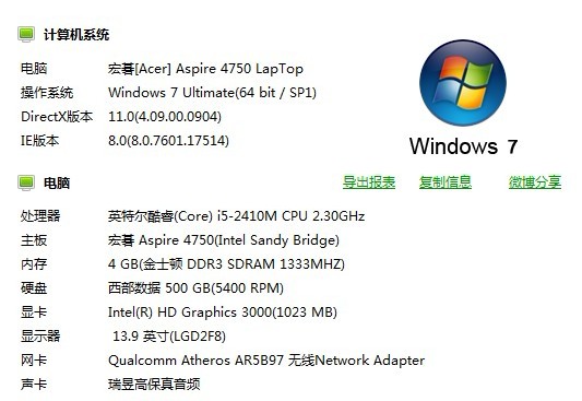 显卡其实是GT540M 1G的,不知道为什么不能显示