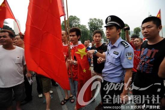 这位恒大球迷国旗被没收现场,这位城管好帅!!!有木有!!m