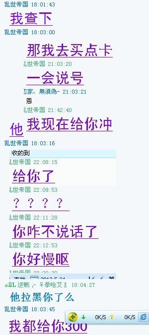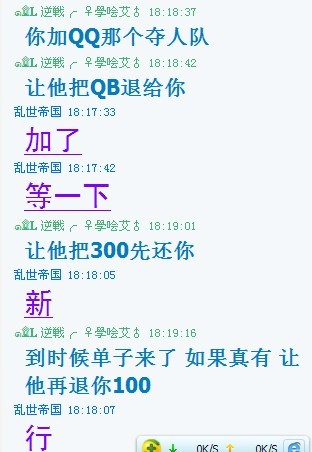 那天我朋友要买它的号 结果付了400QB 他说只收到300 结果我们证据来了他不说话想蒙混那100 结果一刀还帮忙 结果他说还了 把一刀都蒙了 他说什么淘宝买的加好友才行 没有订单 三天到账
