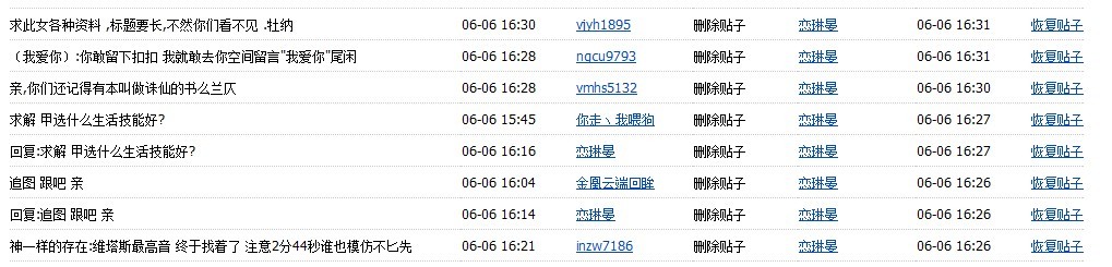 从别的任何地方抄了标题之后改改再发,里面全都是些乱七八糟的内容,话说,四月时也申请过并通过了,度度不是说在问题彻底解决之前放宽申请条例么?事实证明,真没能解决啊,一分钟爆几十个,删了又来,删了再来是怎么回事 = =
