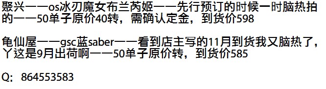 额,冰女是聚x的,saber是龟仙屋的~~当时看着店主写的11月到货头一热就订了,后来官网公布时9月出荷,瞬间蛋疼了。。