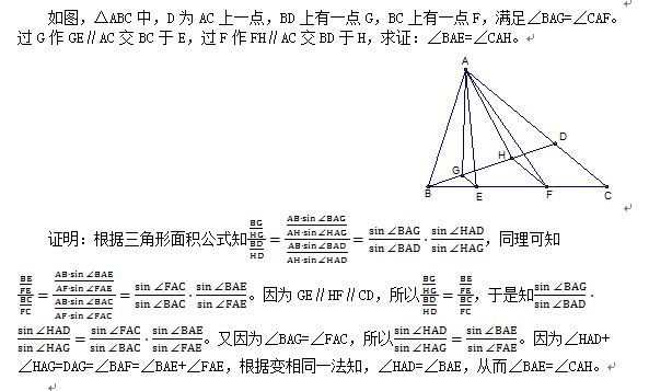 因为HF平行CD,所以∠AFH=∠FAC=∠BAG,∠REG=∠BAG,
