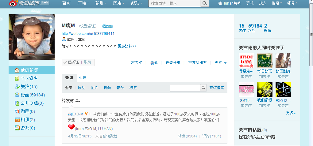 【微博】[120613]鹿鹿微博话题关注取消了