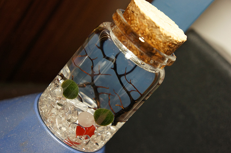 其实主要是那蓝色的玻璃碎石太尖锐,我怕刺伤小海藻所以还是给换了~亲你那个瓶子超好看的说~
