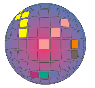 回复 cnwcwt :先做一个矩形,然后复制多个,按矩形排列,然后再小矩形下面画大矩形,用来填充渐变,将自己想要填充的小矩形填充为绿色、黄色和橙色等。最后画正圆,对圆形使用效果-透镜-鱼眼。完成。不知道你能不能看懂。
