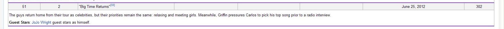 The guys return home from their tour as celebrities, but their priorities remain the same: relaxing and meeting girls. Meanwhile, Griffin pressures Carlos to pick his top song prior to a radio interview.Guest Stars: JoJo Wright guest stars as himself.