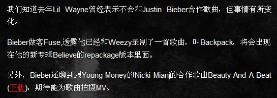Lil Wayne曾经表示不会和Justin Bieber合作歌曲