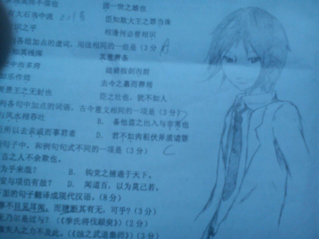 考试无聊于是在卷子画画么…没事的,我也会,但是这是期末试卷吧!少年。