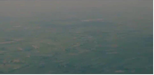 镜头似坐在车上快速行进中,旁边大楼,高架桥等呼呼而过最后来到机场,并有一群人正在登机.