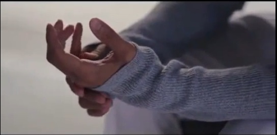 这里,他的眼神明显的流转,还有手,我总是有种这个镜头的他似乎有种“不安,局促”的感觉,我也说不上来,但是我的感觉大概意思就是这样