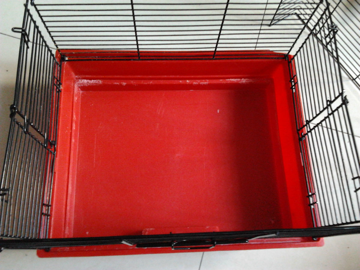 2、红底黑丝笼:包括:跑轮,水壶,食盆,厕所。笼子8新。