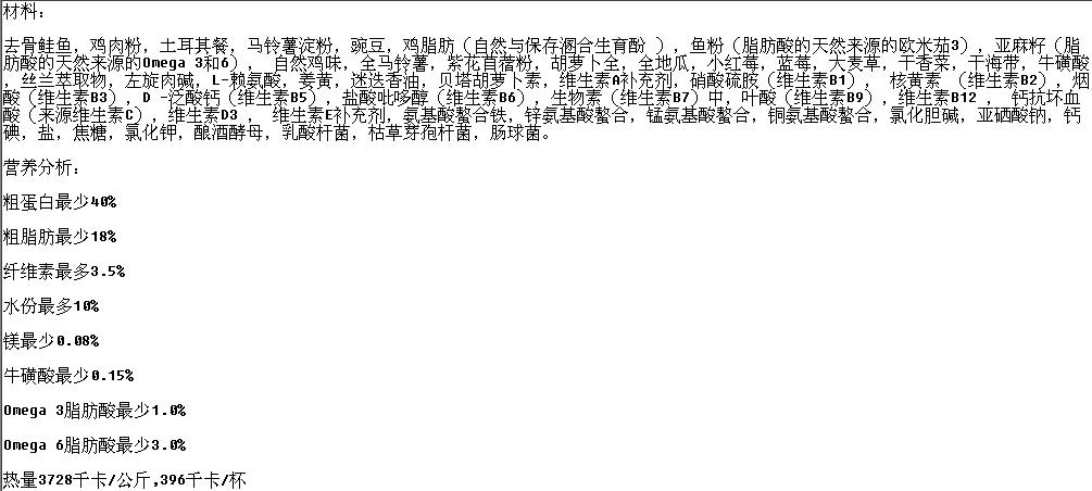 蓝爵六星的蛋白含量确实高一点(40%),但是配料表里有鸡肉粉不知是神马玩意?