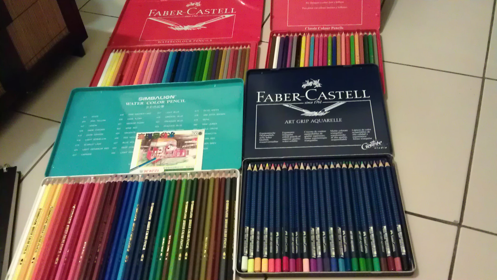 翻出被埋在好深处的四盒水性铅笔 (应该是三盒 一盒是色铅笔 不能沾水的) 还有本发黄的