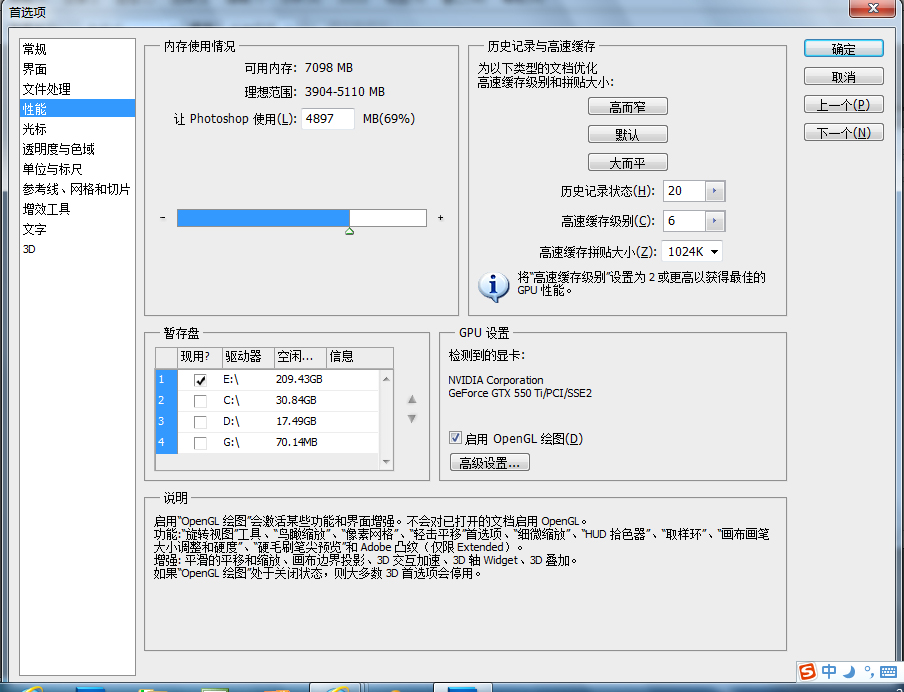 我是做影楼后期的平面设计(其实算不上什么设计) 用的是win 7 64位系统 怎么设置cs5 能让他发挥出做大性能呢? 就是让他存储,