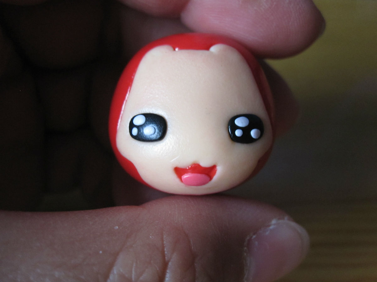 回复 宝贝の仟獣 :先用擀泥棒在玻璃板上擀一个原片,厚度和一毛钱硬币差不多,然后用小刀划出脸的形状。再用刀片铲下来,在手里修整一下就可以往头上贴了。