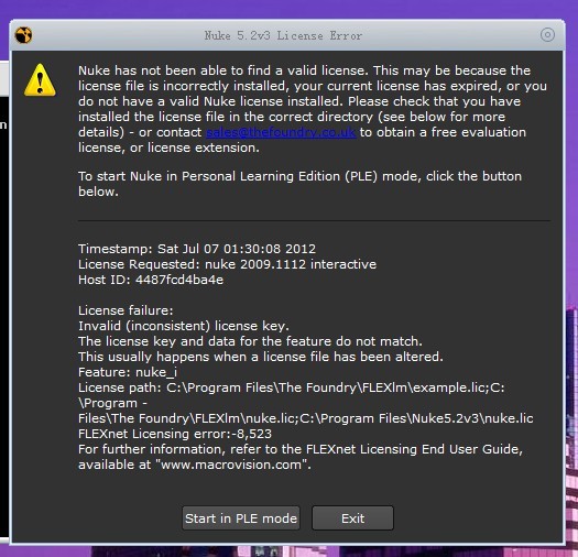 我的是XP系统 安装的Nuke5.2v3 安完以后出现下图 怎么办···