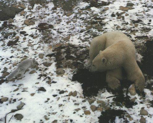 Travis正懒洋洋的在冰原上散步。他刚刚美餐一顿斑海豹,拿雪擦干净嘴,随意的把剩下的肉丢弃不要。反正也会有其他的懒熊或者其他小型食肉动物来打扫,在冰天雪地的北极,食物都是很珍贵的。Travis已经六岁了,体型比一般同类要小一点,但完全不影响他敏捷的身手。