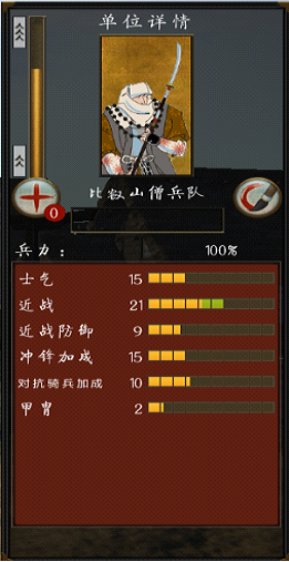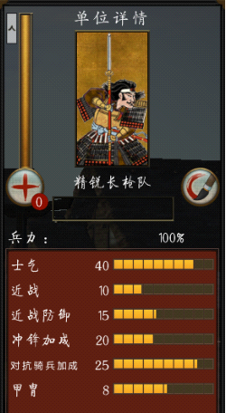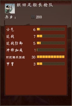 枪足轻:枪足轻是本系最基本的单位,尽管战力底下,士气薄弱,不过这都确掩盖不了它的光彩,虽然战力最差,但建造条件低廉,而且人数最多,在高手手里,不开阵砍得过弓足轻,和弓武士砍就有点半斤八两了,但是及时是混战,任何近战骑兵都不是它的对手,包括旗本队,技能是枪阵,开阵的话正面打得过刀足轻,顶刀武士可以顶一会儿,其他骑系或弓系的想冲枪阵统统死,而且开枪阵的话,足轻背后的弓系输出时的误伤可以降到最小,但枪阵最怕射和把后背和侧面亮给敌人,敌人一轮齐射可以让它死一堆人,侧后的话还用我说吗?造成这种结果肯定是指挥官失误或者2.了又或者敌人太聪明。升级甲防(甲作加武家町的铁匠铺)的话可以考虑全加防防弓箭和战场生存率,这对他升高经验有帮助,加攻(兵器了加武家町的柔术道场)的话最多加点近战能力,不过我想用足轻输出的人没几个吧??加士气(圣地的大社)…………….士气超过10再加上主将激励的话,只要敌将无降低士气的属性,全员基本会战斗到只剩10%,(都10%了你还能要求人家顶吗???你也太不拿人命当事了吧,貌似他们只是数据的说……….)